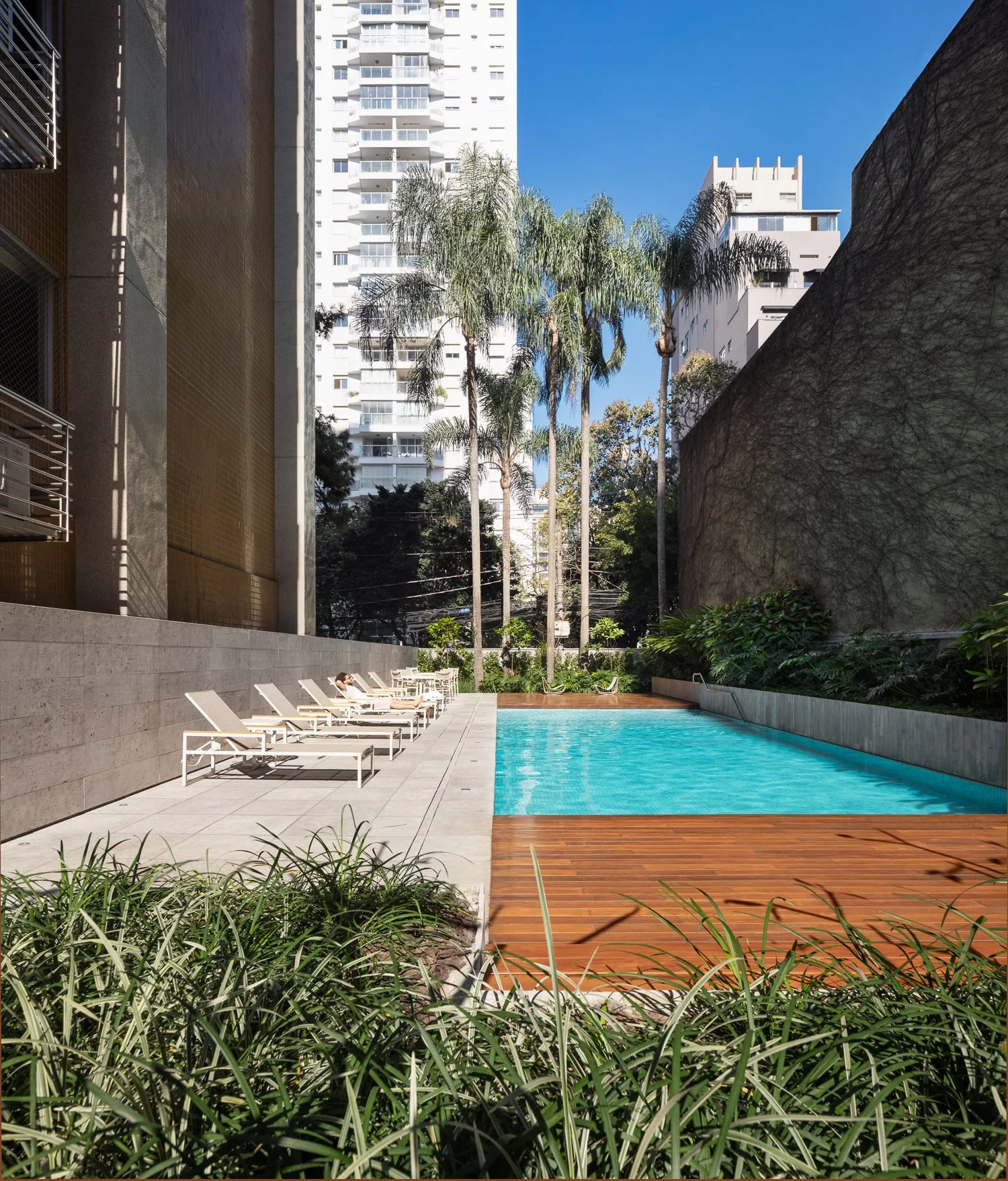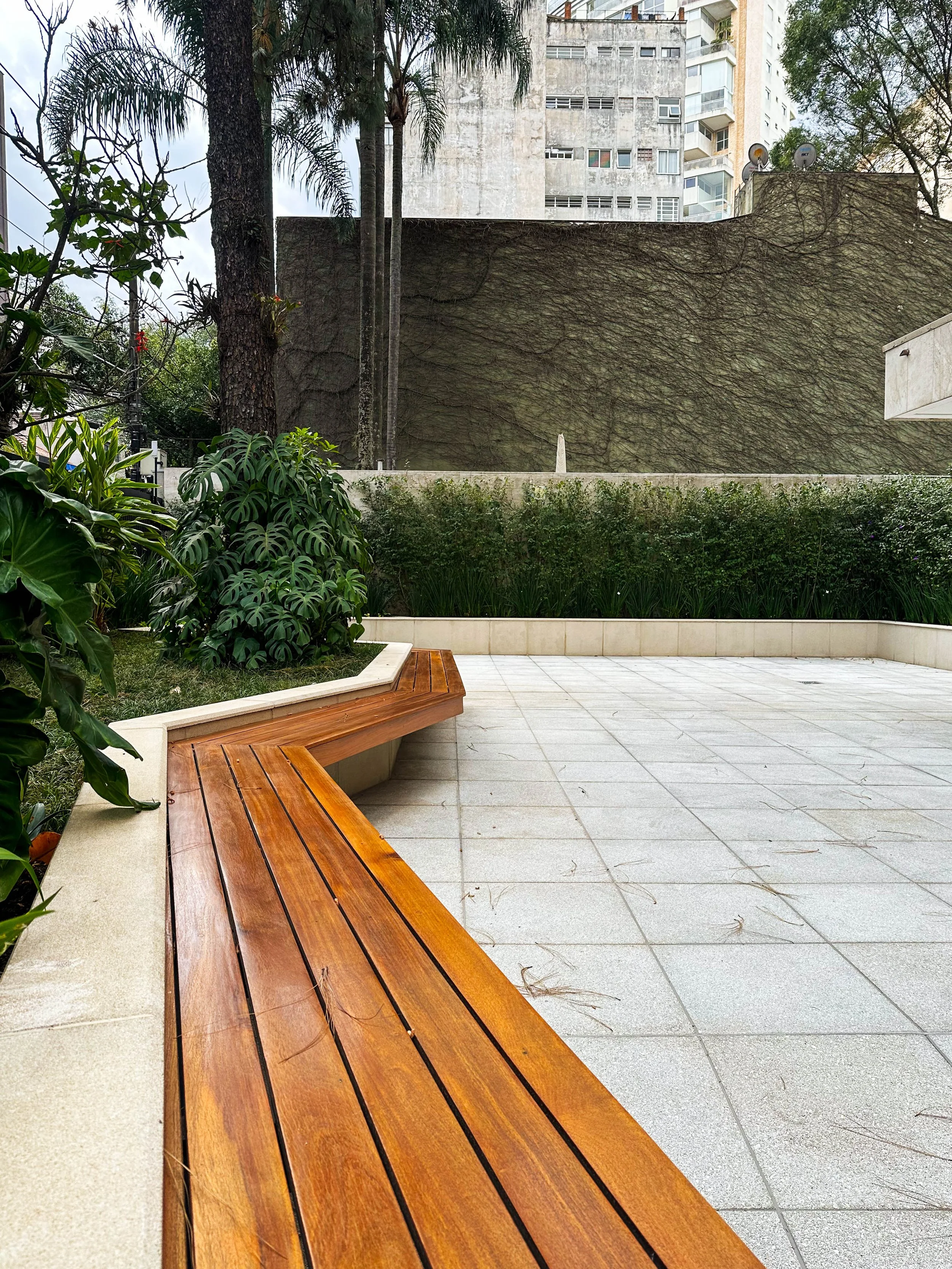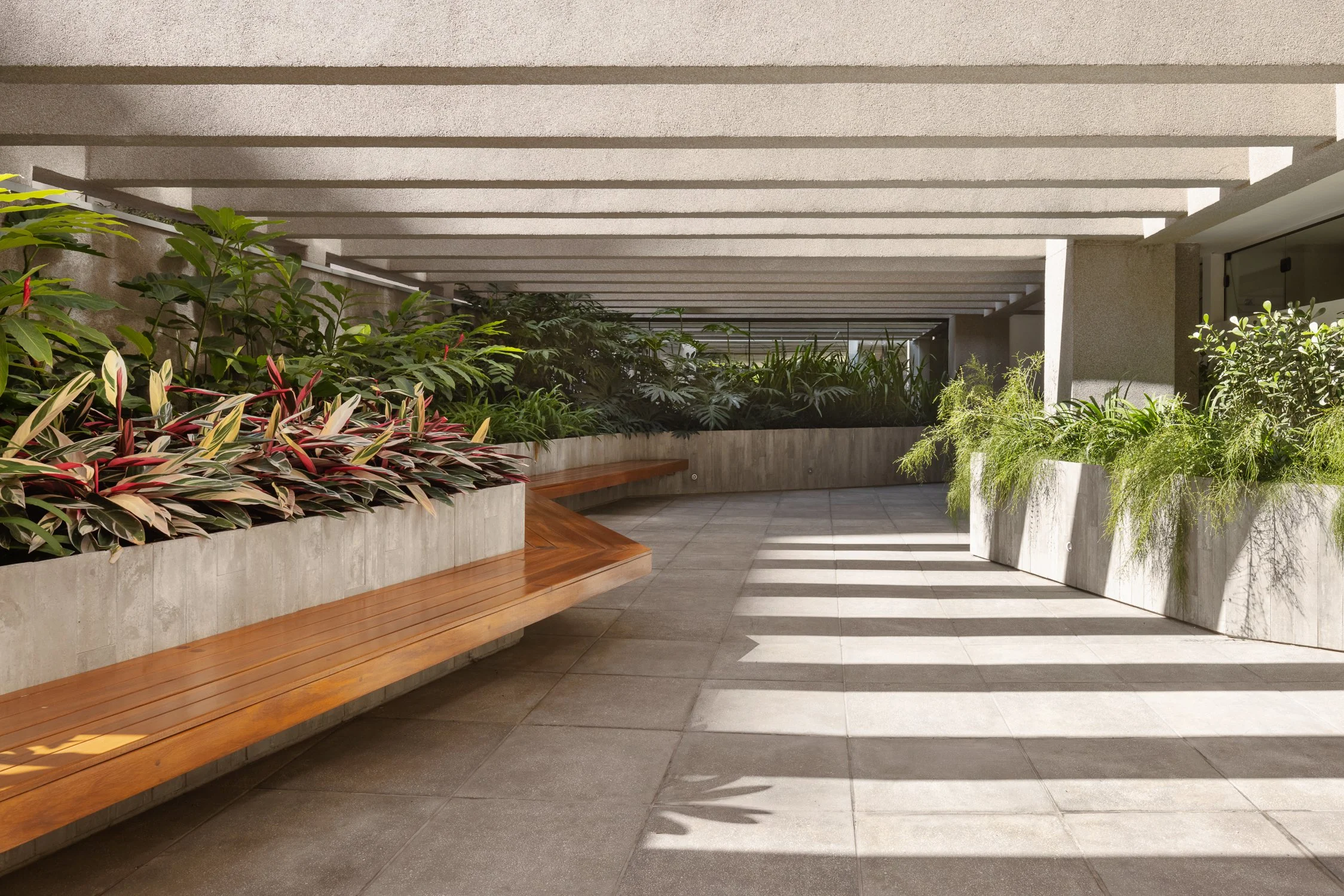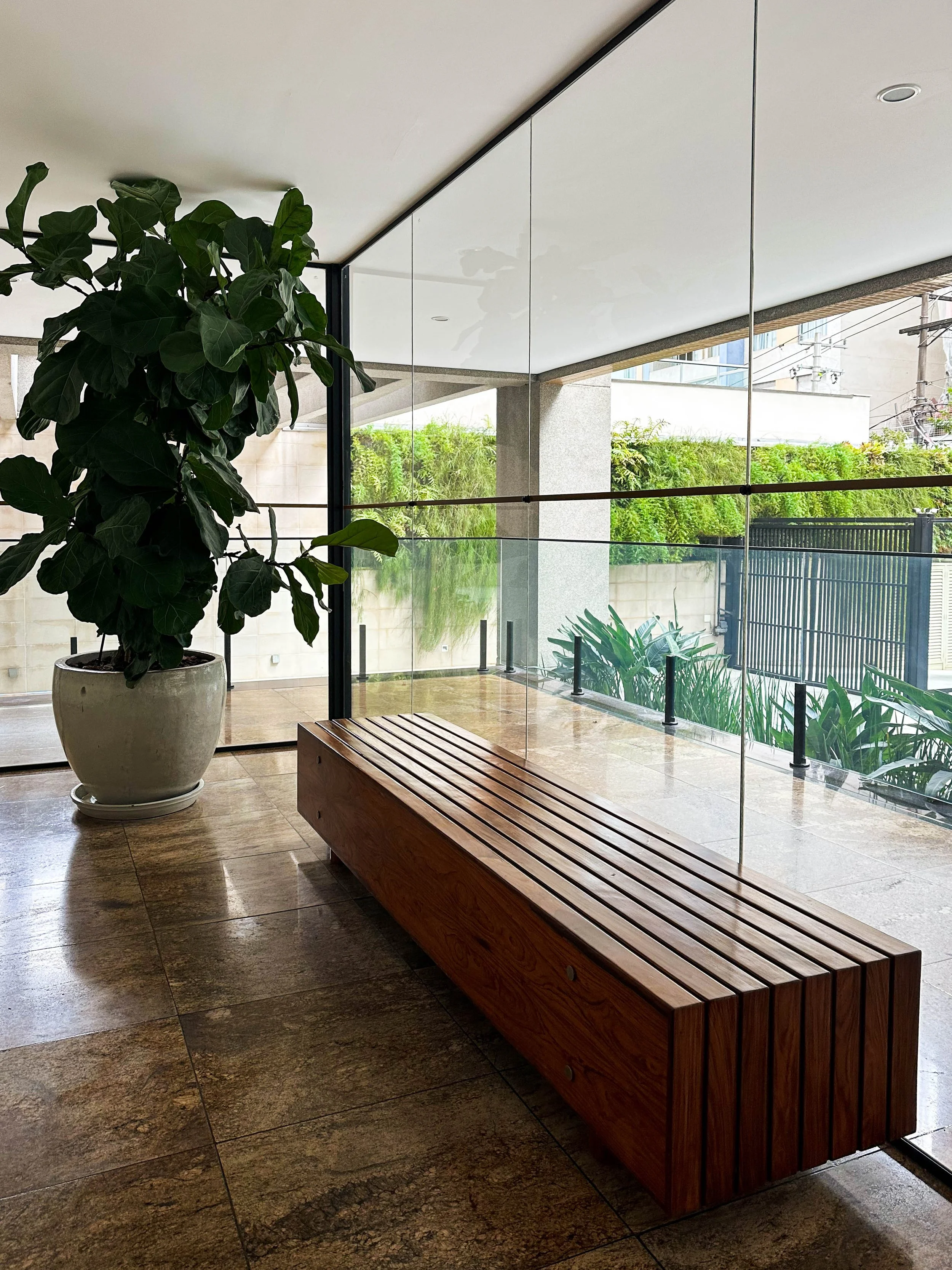 O projeto de reforma do térreo/área social do edifício Palmares, localizado na alameda Itu é de co-autoria de Maraí Valente e Edu Chalabi.